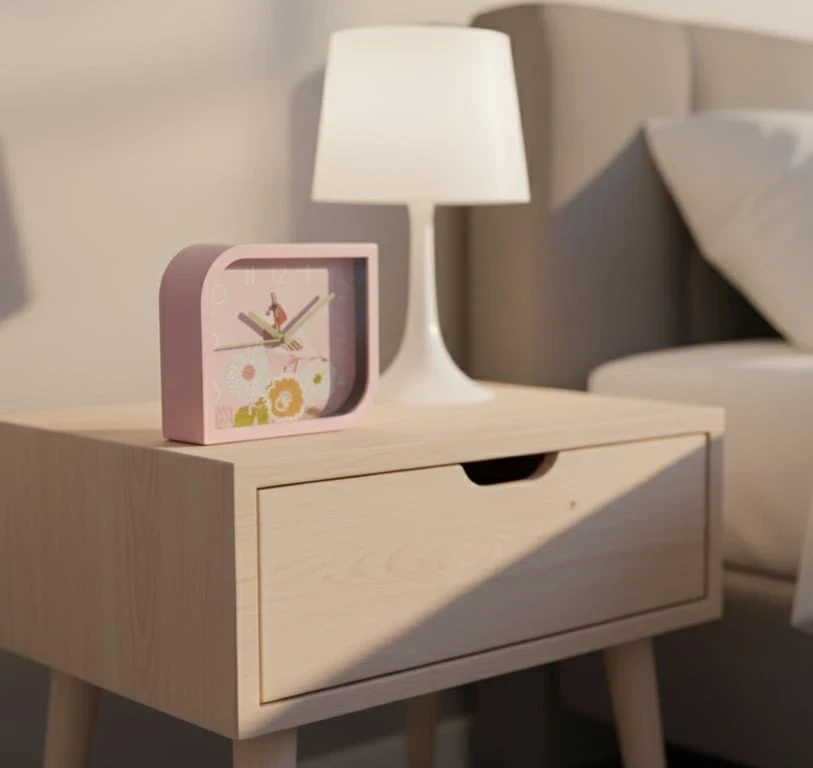 Wake up to a touch of springtime charm with this delightful Table Alarm Clock. Encased in a soft pink plastic frame, the clock face features a beautiful, stylized illustration of a sweet bird nestled among vibrant flowers. This artistic design, set against a complementary light pink background, makes the clock a lovely decorative accent for any nightstand, desk, or shelf. With clear numbering and bright, easy-to-read hands, this compact piece is a charming and functional way to keep track of time.